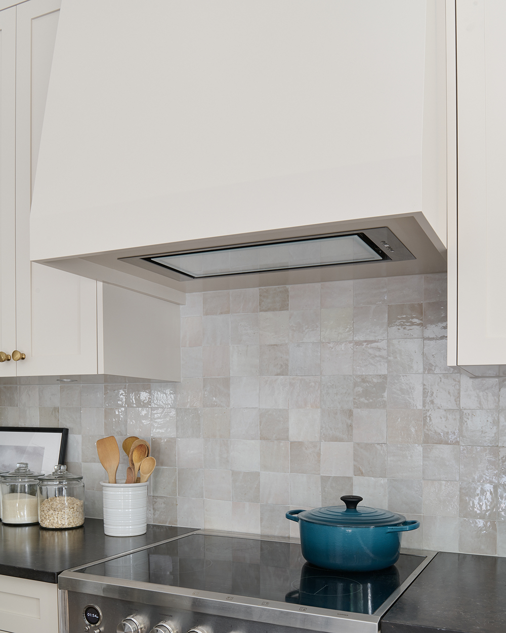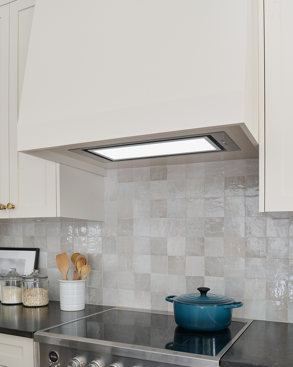 I typically design kitchens with a range hood insert incased in cabinetry. It is a more understated and classic look rather than having something large, ornate or “bossy.” The Tornado Glo fits in seamlessly in our kitchen and casts a beautiful, soft light.